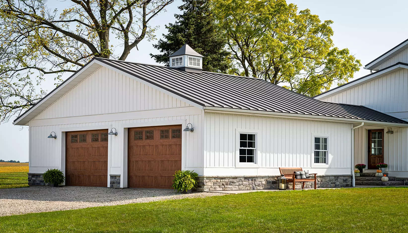 Pick short or long grooved panels, add windows and decorative hardware, and select from 16 standard colors including rich Ultra-Grain® wood-look and modern Lustra™ matte finishes. Or try over 1,500 Color Blast® custom shades to get exactly the right color.
